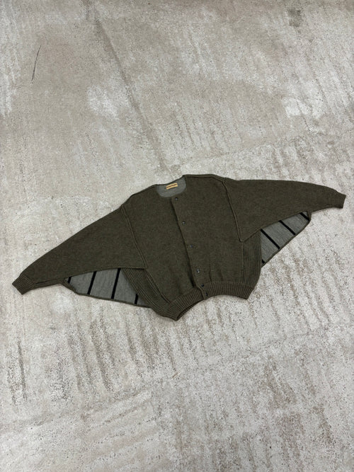 1970's Issey Miyake Butterfly Double-Layer Wool Cardigan With Snap Closure